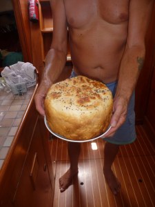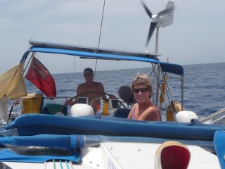 On a boat in hot climes the following are definitely needed; bimini and awnings (Sunbrella net), water maker, solar panels, fans above bunks and galley, sheets for sleeping on/under. Pat and Tony have Turkish Haman towels which dry quickly. A good supply of chilled water with flavours for variation (and increasing salt levels if possible) – Tang powders work well made up in a jug to ensure the crew all drink a couple of glassfuls at a time.
