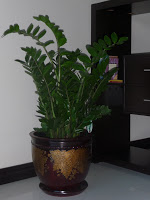 So let me introduce you to Boris – a zamioculcas zamiifolia or ZZ Plant, apparently the latest thing in office decor in the UK. Boris likes dry, slightly shady conditions and prefers winter temperatures to be above 65 degrees F / 18 degrees C. I don’t think that last requirement will be a problem even outside here. The other new resident is an asparagus fern which when it gets a little larger, I hope to pot up in an “amphora” style pot on/in a stand, similar to the attractive display of pots outside the Intercontinental here. For now though its new home is on one of the sofa tables.