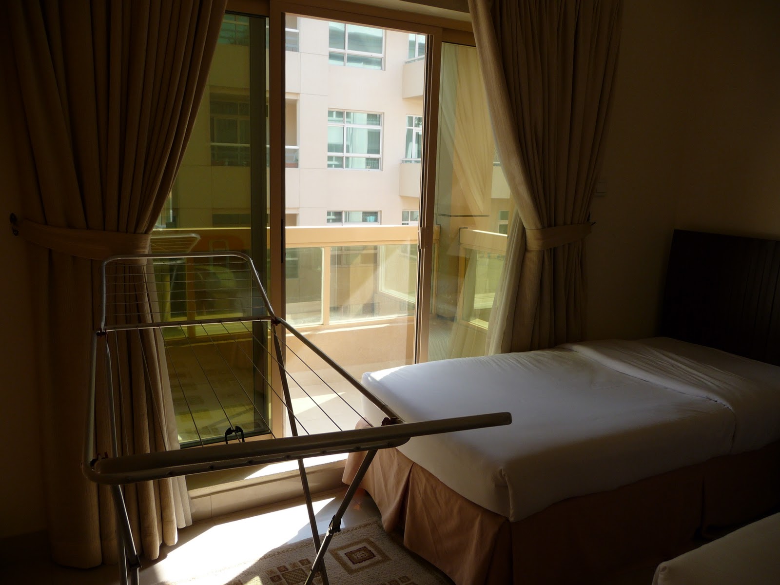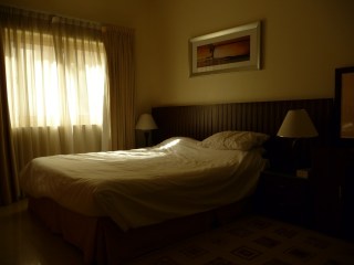 On the plus side its easy to move into a fully furnished servicd apartment with just a suitcase of clothes but don’t expect everything to be a home from home. The modern boxy sofa in Dubai has so little padding in its seat that after a short period of lounging the frame starts to wheedle its way into your consciousness. In the bedroom when both of us sit up in bed the frame and mattress slide across the tiled floor creating an ever-widening gap between the base and the headboard. Another place we can’t lounge in comfort!
