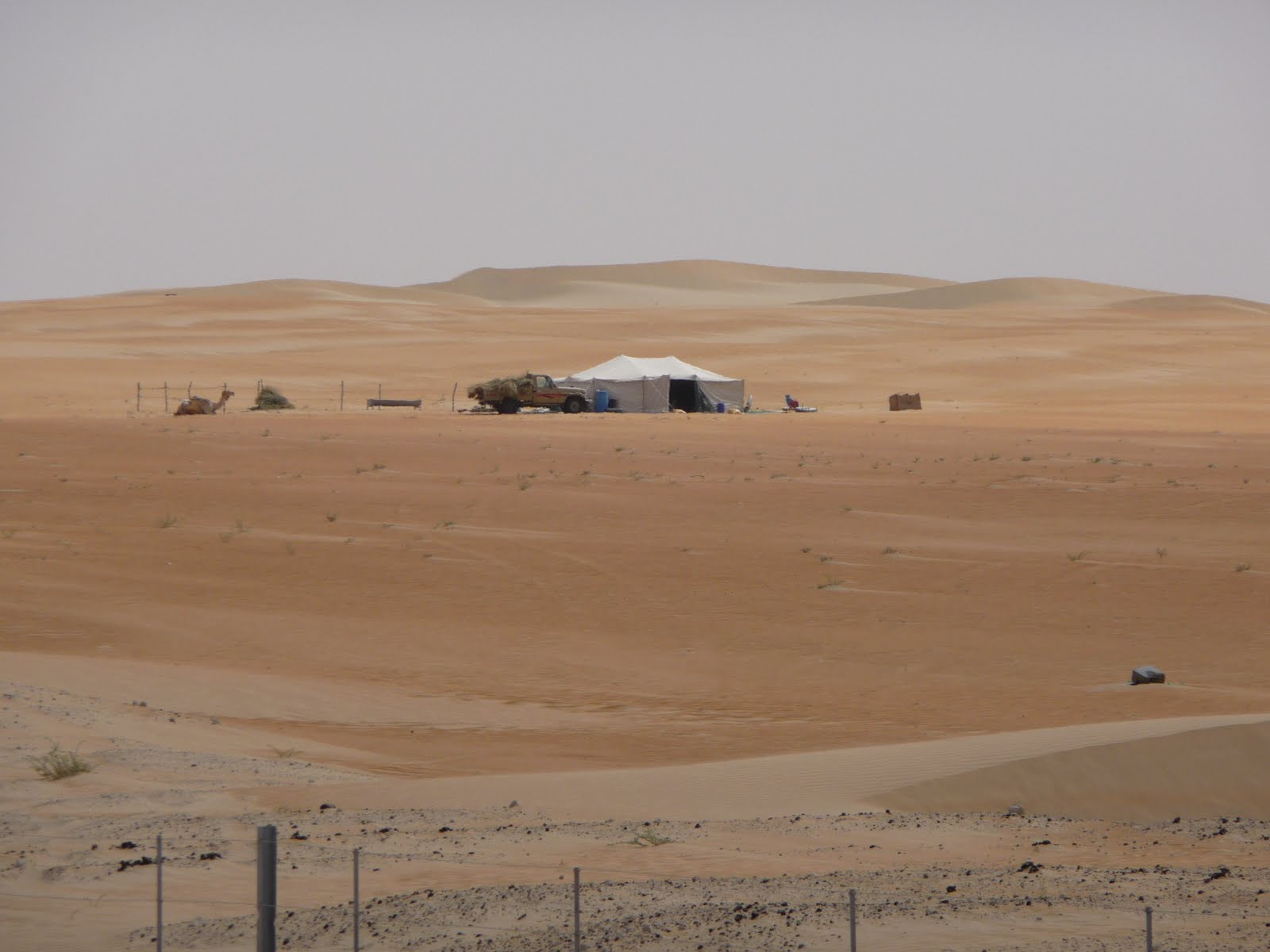 The Empty Quarter or Rub al Khali, is not called so lightly and even modern life has made little impact on this part of the world – miles and miles of sand with an occasional road or line of pylons and the odd oil well head. This is the world’s largest sand desert stretching across several countries. For the most part this corner of the UAE is truely “empty” with little traffic and a few camels. The camels struck us as different somehow, then we realised their hides were so dark as to be almost black not “camel” – do you get different breeds like you get breeds of cows or sheep? No idea.
