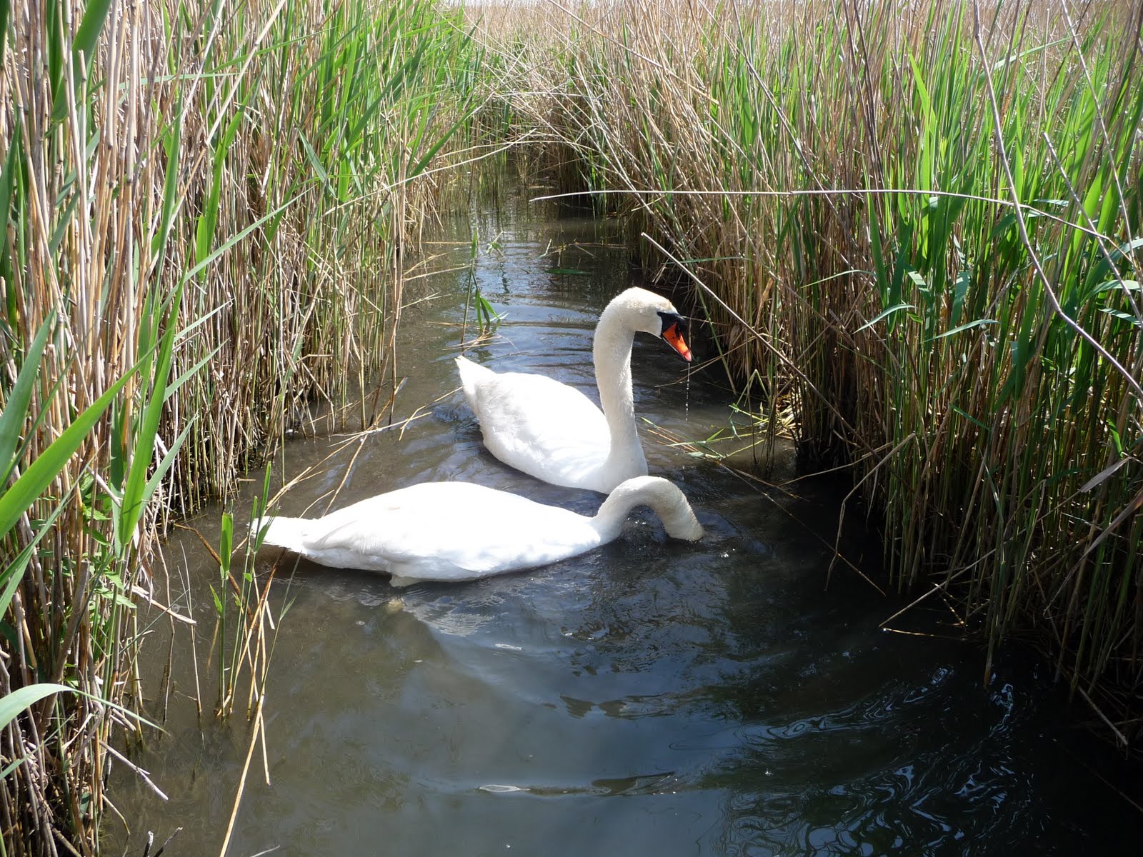 As we were wide awake in the chilly morning air it seemed stupid to waste a lovely morning by returning to our bunk so by 11am we’d cycled the ten miles to Abbotsbury in time for the noon feeding of the swans. The cycle nearly killed us so unfit we have become but it was well worth the effort to see the hundreds of swans with many many pairs sitting on nests all around the place. The swannery has been there for hundreds of years, originally to provide food for the monks in the near by abbey, though sawn meat is a bit of acquired taste apparently tough, stringy and fishy tasting. This swan heaven with three meals a day and nests provided sits at the top end of Chesil Bank on the shores of the Fleet, the lagoon formed on the landward side of the bank. At this end the Fleet is virtually freshwater, what swans require for drinking, further down it turns brackish and there eel grass grows on the bottom, a delicacy for the swans. These swans belong to Abbotsbury not the Queen nor one of the London Guilds, the latter own most of the Thames swans, the former all the rest. The swans are free to fly and are tagged, visiting swans get a tag too to indicate that they have visited rather than ownership. Shortly after our visit the first cygnets fo the season arrived, a couple of weeks ahead of the usual schedule, probably because of the unseasonably warm weather the UK had had before our arrival.