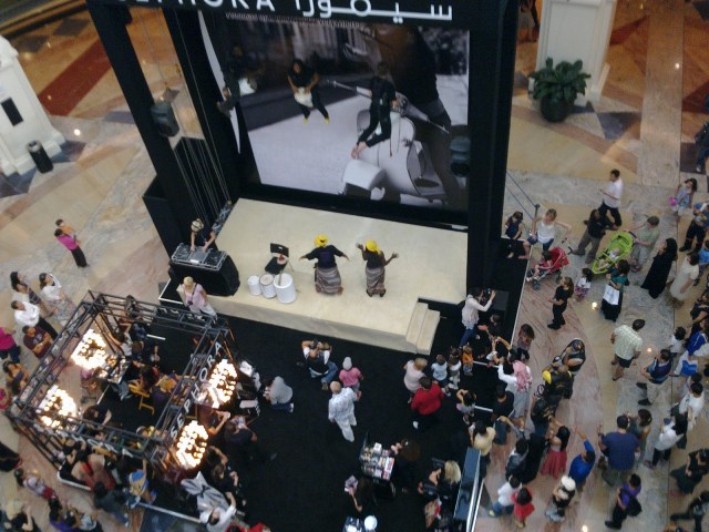 3. Thx everyone for popping by. Great to see you enjoying this one. It's a Sephora store opening in Mall of the Emirates, Dubai last Friday afternoon as viewed from the 2nd floor walkway. They were doing makeovers around the stage but I'm not sure why the aerial African drummers and a DJ. It was good fun anyway and pulled in a large crowd as with the temperatures rising outside, MoE is a good place to while away a few hours.