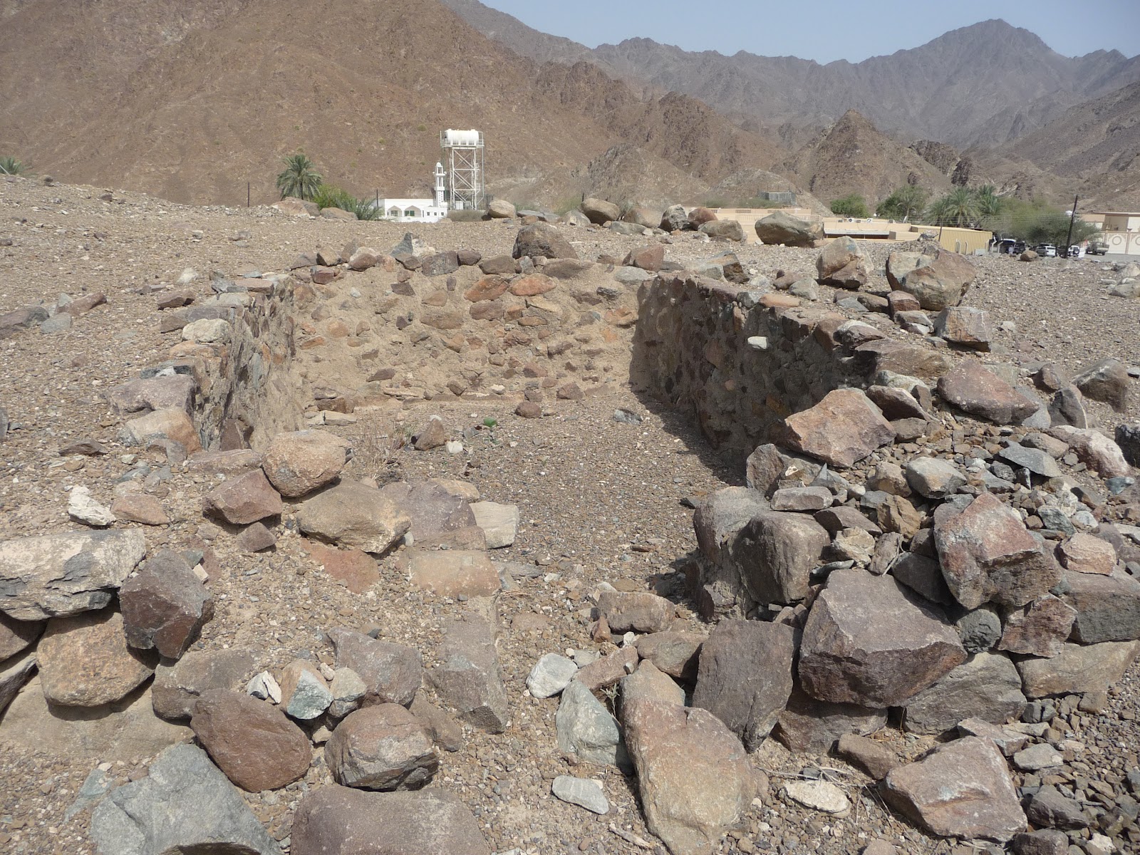 In our travels through Musandam and the mountains of the northern UAE we have often come across low stone structures with very thick walls. The picture to the right was one of several such ruins we came across in Wadi Sahm & Wadi Helo this weekend. They are usually abandoned and roofless today but were once strong rooms know as Bait Al Qefel literally “House of the Lock”. NB: the Arabic word for “lock” is a great illustration of the problems of transcribing a spoken language I’ve seen it spelt “qefel”, “qafl” and “qufl”!