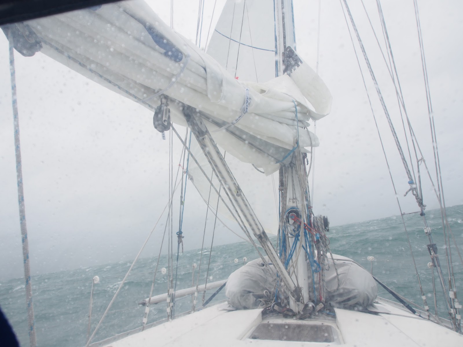 | Our scrap of jib viewed through the sprayhood |