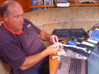A wet Friday afternoon was spent looking over charts and Kevin’s copy of the classic guide to exploring this part of the world “The Scottish Islands” by Hamish Haswell-Smith, deciding where to head next but without coming to any real decision. We also wondered if the new AIS and or our VHF aerial had an intermittent fault but couldn’t identify what except that the AIS box persisted in a red light. Our Dutch neighbour had our transmission on his chart plotter but we weren’t receiving anything not even VHF traffic from further down the locks or the coast guard. It would have to wait until Monday to consult the supplier we thought but in fact once we’d cleared the canal and headed into Lock Linnhe on Saturday afternoon everything was working normally, it must have just been our location.