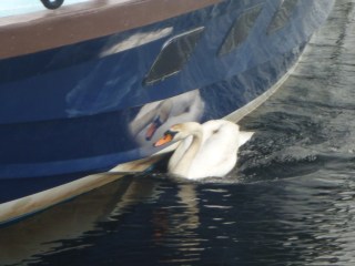 In between the locks were “bottomless” lochs and man-made canal sections all very pretty with fantastic scenery when the cloud lifted enough to see the mountain tops. Most hillsides were clad in Forestry Commission fir trees, monoculture at its most efficient but not so attractive especially when there were big gashes where felling had taken place. We also came across a few large logs floating in the canal below Loch Ness, a potential hazard to navigation. The other plant that seemed to take up a lot of hillside is the rhododendron and later down by the river side near Fort William we came across a large area of Japanese Knot Weed, both plants introduced in Victorian times and both a threat to native species, pretty but potentially deadly.