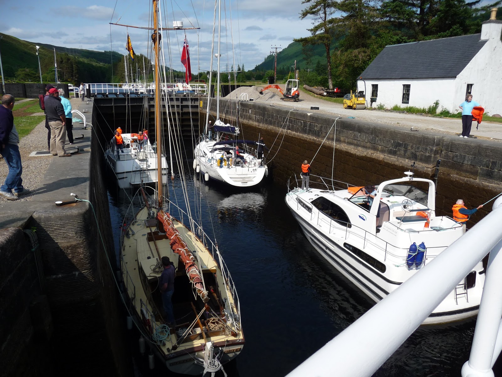 Laggan Lock – the lower left boat is a lovely Hilyard, part of the Old Gaffers Rally |