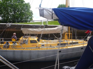 Further on at Laggan Locks, Rona’s owner Jim joined us for supper (we had planned to go to the pub but it was closed on Wednesdays and possibly Tuesdays too), the three of us had a pleasant evening over a few glasses of wine chatting about sailing. Jim, a retired biologist from Edinburgh, lives aboard Rona a Rival 34 (the same model of boat as the one Susie took her Day Skipper exam in years ago) and spent last winter in Lewis. He now plans to wander through the Western Isles for the summer. Rona has oil lamps and a solid fuel stove for heating plus a paraffin cooker, cosy and practical.