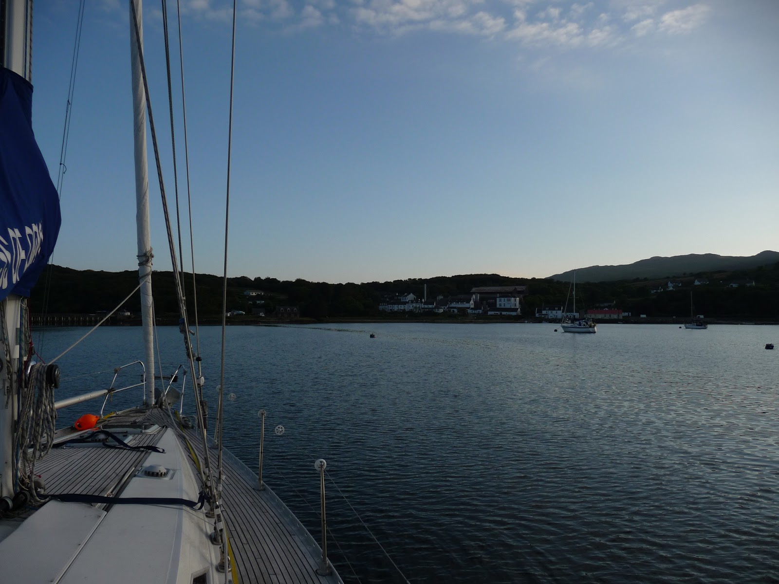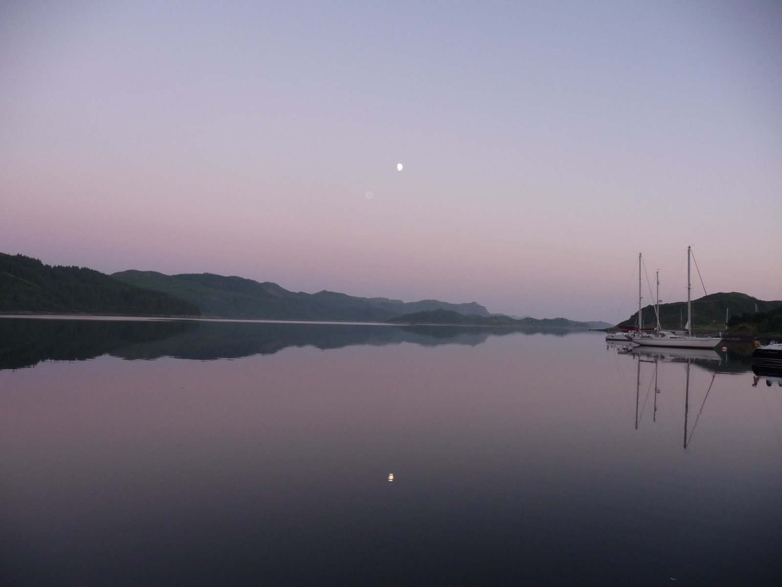 Next are the boats who look at the crowd and decide the isolation of the other shore of the loch is the place for them regardless of the fact that it might be exposed to the entrance and the wind is whistling in (cf a large Westerly in Loch Aline who must have had an uncomfortable night as they moved over to be closer to the crowd early in the morning), or yet others who quite clearly haven’t examined the chart well enough and end up in danger of swinging into a currently submerged rock or bank when the tide turns (we’ll own up to doing this in Chi Harbour many moons ago and spent an uncomfortable few hours lying at 45 degrees on the sand) .