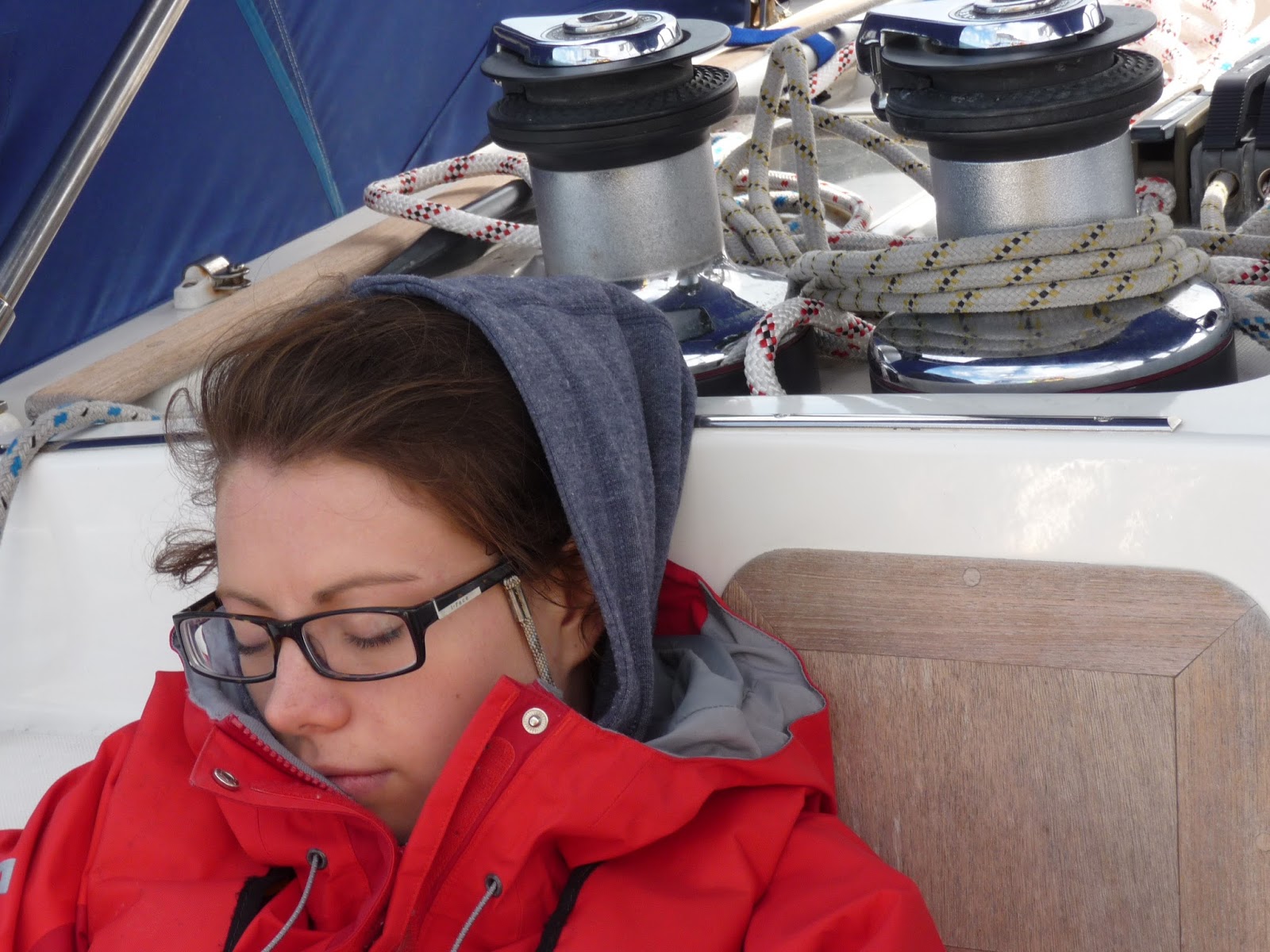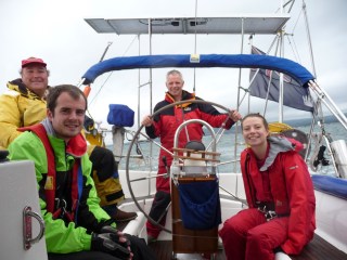 The weather brightened and the wind bent by the lough shore was almost behind us. It was pleasant sailing with lovely views of the low lying coast – green fields, cottages and small towns. Aine and Colum got used to helming and picking out the red and green buoys that marked our passage through the sound. Once round the corner however the wind picked up and with it the chop, Temptress was making slow headway against the tide and wind. With Colum starting to become a bit quiet and a little grey we discussed our options; plough on regardless to Ardglass or turn back to the Lough and sample the delights of Bangor Marina. The latter was voted for and we had a pleasant afternoon ashore (99’s and beers at either end of a long walk) before meeting up with yet another Harris cousin, Tania plus her partner Ian for drinks and nibbles in the cockpit. We can also recommend the Bokhara Indian Restaurant in King Street, Bangor where the crew had a great supper.