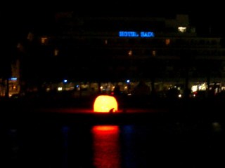 Finally our favourite, Key Frames a French piece from Lyon. It filled the large square with a group of matchstick figures made out of florescent tubing. Each figure is suspended in various running poses on a post, looking for all the world like one of those flip books that animate a figure but in this case by means of synchronised lighting a line of six “competitors” run a race to kick things off. This “urban installation” is incredibly well executed with an accompanying sound track of snippets of classical and disco music as well as voice. There is plenty of humour too; one of the racing figures apparently trips then on being invited to try again performs somersaults down the course. Later two of the stickmen fight when one announces to the other “connaissez Bruce Lee?. After a sombre funeral march enacted by other figures the fallen loser decides revive and celebrate with a disco! Every performance got a round of applause, round the square even elderly couples indulged in a little waltzing or jiving depending on the music whilst little girls simply stood amongst the figures jigging up and down to the music or staring up at the animation. Brilliant entertainment, well done Cascais!