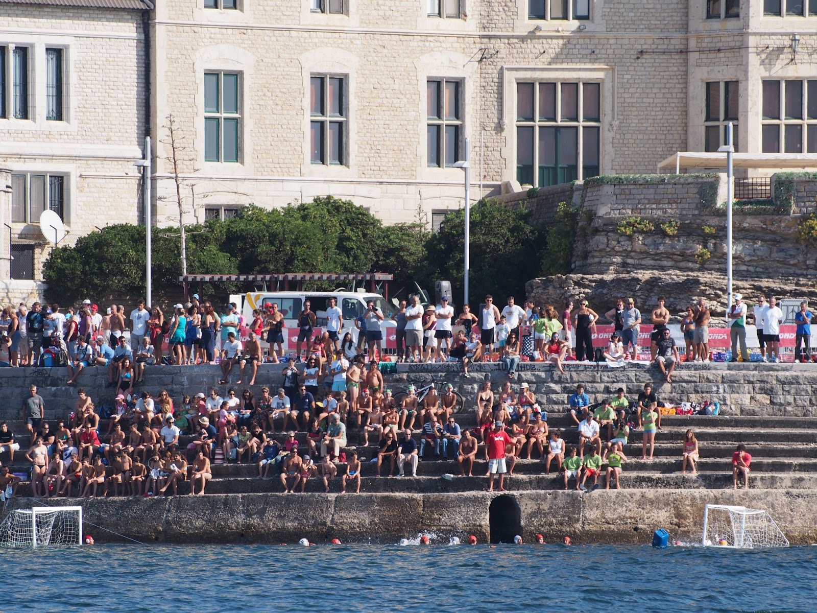 Here in Cascais there has been no shortage of free entertainment. Saturday saw the setting up of a Swim Challenge off the closest beach to Temptress and a water polo pitch. No idea what the commentary was all about but it appeared to be some sort of triathalon in the morning followed by longer distance swimming events in the afternoon. And we have discovered the pretty O’Neil house in the park with its cloisters and Moorish tiles, now a museum. It seems quite a few Irish families emigrated to Lisbon in the 18th century as the O’Neils counted O’Byrnes and others in their family tree.