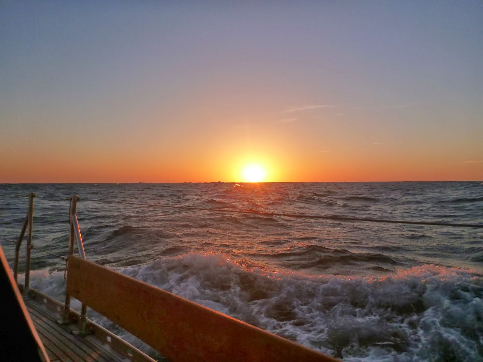 Temptress rocked and rolled her way through the remainder of Thursday and into the early hours of Friday before the wind began to moderate a little and swing a bit to the east, off the land. The sea became calmer, the crew regained their sea legs and life became easier on board. Thursday night Kevin cooked yet more of the local spicy Mergauz sausages with onion gravy, cabbage and boiled potatoes. Friday lunchtime Susie experimented making Egg Paratha rolls using Arabic flatbread and four single egg omelettes to roll up in them, accompanied by some fried tomato, green pepper and chilli – tasty and by the fourth egg the chef finally got the hang of turning out the omelette onto the bread. Friday supper was a chicken risotto Kevin rustled up from the remains of a cooked chicken we’d purchased in a Rabat supermarket for lunch a couple of days before (good value for money as this was our third meal from it). The bones and seasoned skin made an excellent stock to cook the risotto with.