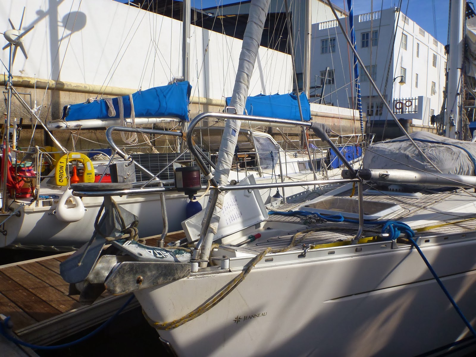 Adrenaline finally gone we slept shakily on Thursday night but woke resigned to being here for some months. It could be worse, winter in the Canaries is not cold, our home is still afloat and Lanzarote is spectacular, just a walk on the lava field on the headland beyond the boatyard is impressive with huge clear turquoise waves crashing on the foreshore. We’ve hired a car (the marina staff got us a good deal) and decided that as we are here for the foreseeable we’ll tackle some of the bigger jobs on our boat list. You know the ones that aren’t essential to safe sailing but none the less will add to the comfort of the crew or well being of the boat. Number one of these is re-upholstering the saloon – the grubby cushions are over twenty years old, seams are splitting and underneath the cloth is starting to rot badly in places. We’ve patched it but it is not going to last too much longer with us living aboard full time. The local sailmaker (a chirpy Brit) is organising someone to come out from Arrecife next week to take a look and provide a quote for new foam and covers.