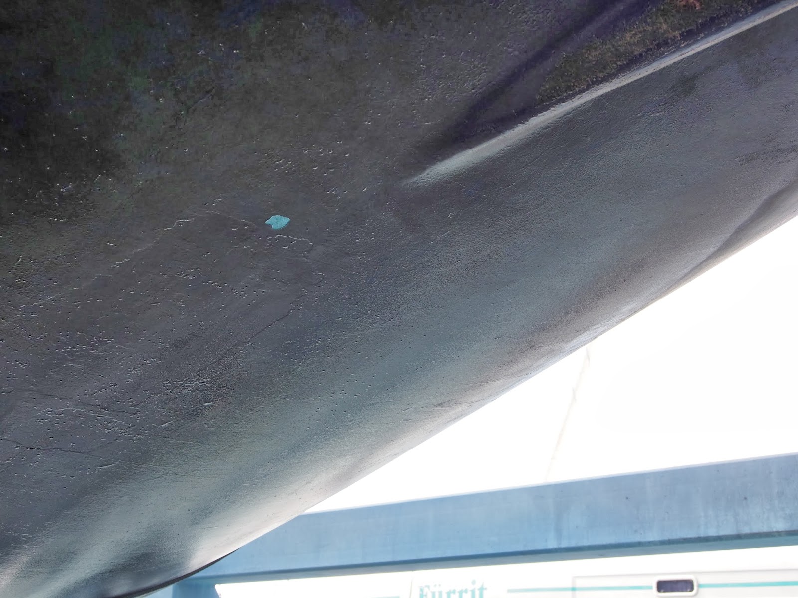A single spot of antifoul missing forward of rudder – contact with an unknown object? |