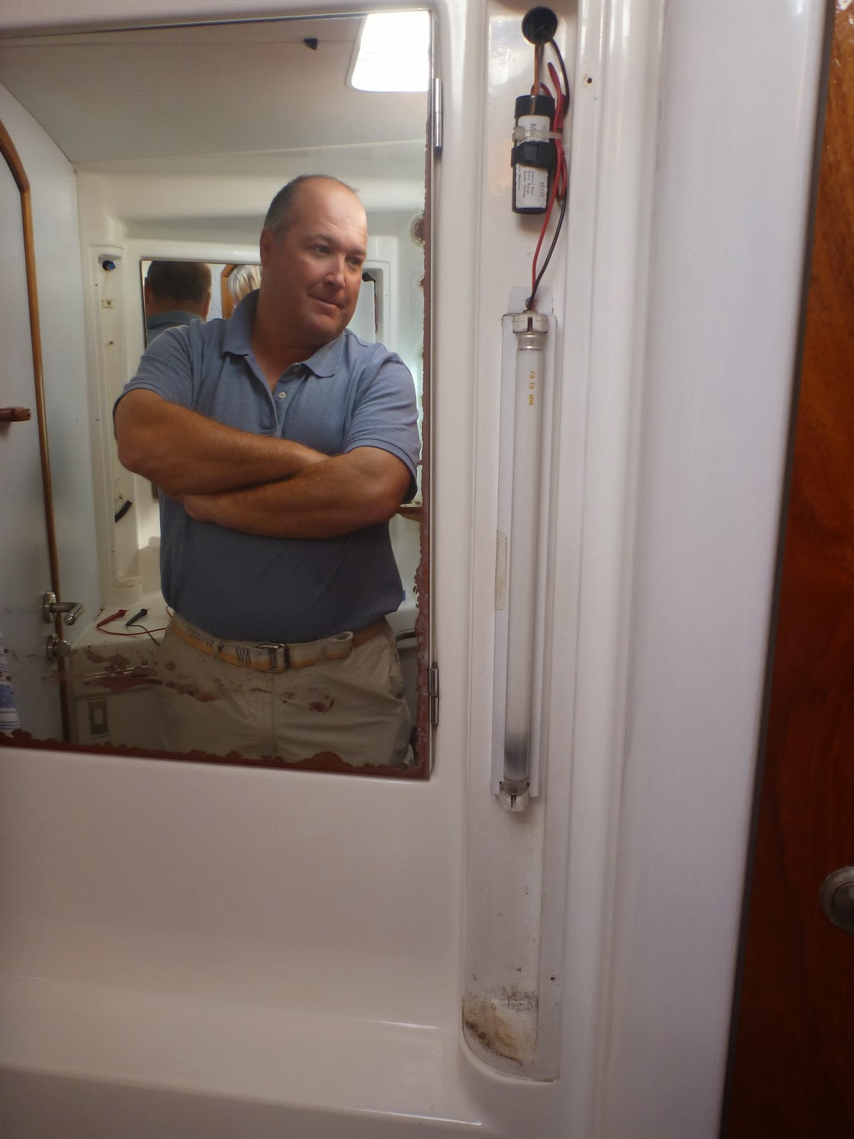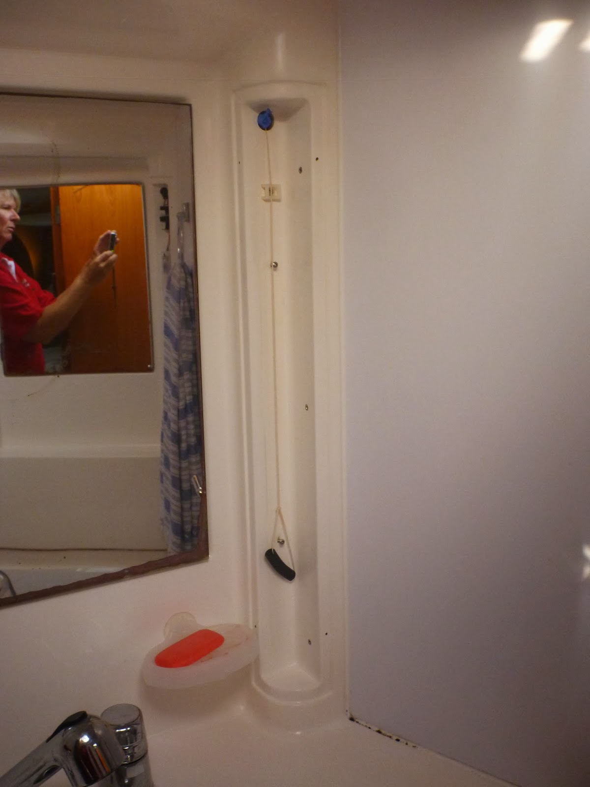 Meanwhile down below in the forward heads a fluorescent light failed. It is one of four, two to port and two to starboard either side of each of the mirrored locker doors that hide our toiletries and first aid stuff. Replacing the tube is a simple task I’ve done before, unscrew the cover, replace the tube and hey presto. It was not to be; inserting the tube from the light on the other side of the mirror as a check revealed that the fitting was faulty, not the tube. The chandlery at Marina Rubicon hadn’t a slim enough 12v light fitting, cleaned out by the many other boats heading west across the Atlantic and not as yet chance to restock. Though it was nice to see that the ones they did have were the same brand; the Essex based manufacturer is still in business more than twenty years after supplying Jeanneau with light fittings prior to Temptress’ being built.