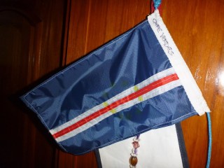 The first flag Temptress requires is for the Cape Verdes as Jo kindly purchased a Moroccan one as a present for the boat in Baiona and the Canaries are part of Spain which we already had on board. Now the CV’s flag is very straightforward – a navy rectangle with a white stripe superimposed by a red one about a third of the way up from the lower edge. Before it could be cut out however I needed to learn about sizes and proportions of a flag. Flag making is an ancient art a bit like heraldry so the terms are archaic but fun. From the internet I gleaned the following: