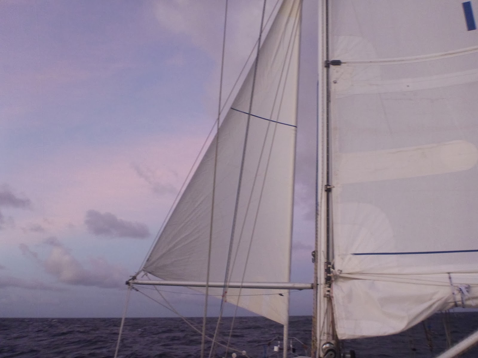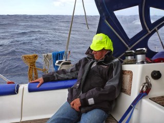 | Poled out gennie and 3rd reef – our preferred sail plan |