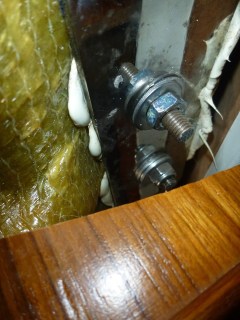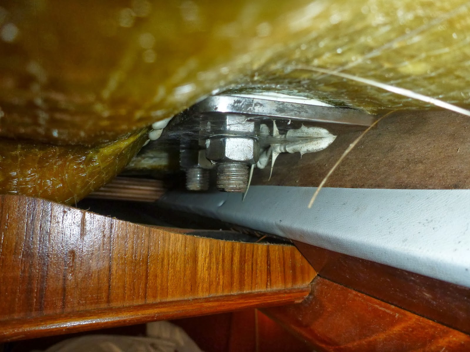 There was plenty to do though, the remainder of the old bolts needed knocking through the deck and the whole area required cleaning up of sealant and crud so that the fitting could be re-bedded without any leaks. Vital not only to the health of the replacement bolts but the First Mate would not appreciate sea water drips on her head when lying in bed directly below the fitting.