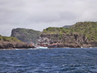Oops – don’t think this is the right gap between the rocks off Bequia |