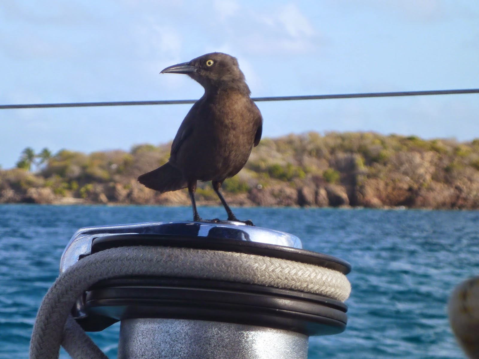 Back in the UK, the USA or wherever you call home, you’d lock your home at night prior to going to bed and anything of value you’d put away, locking the garden shed, garage or wherever it is stored. Having said that we often leave stuff like snorkelling gear out of sight on the cockpit floor to dry, too lazy to put it away in a locker after our daily swims but hey ho, out of sight out of mind. Our dinghy is always locked to the boat at night and if we ever happen to be alone in an anchorage with a previous reputation for theft (not that we have as yet) then we can raise it out of the wateralongside Temptress quickly and easily, the dinghy being already permanently prepared for such an event with strops installed inside it. In fact we may do this more often as being hauled out delays the inevitable cleaning of slime and stuff growing on the bottom and drains the rain out.