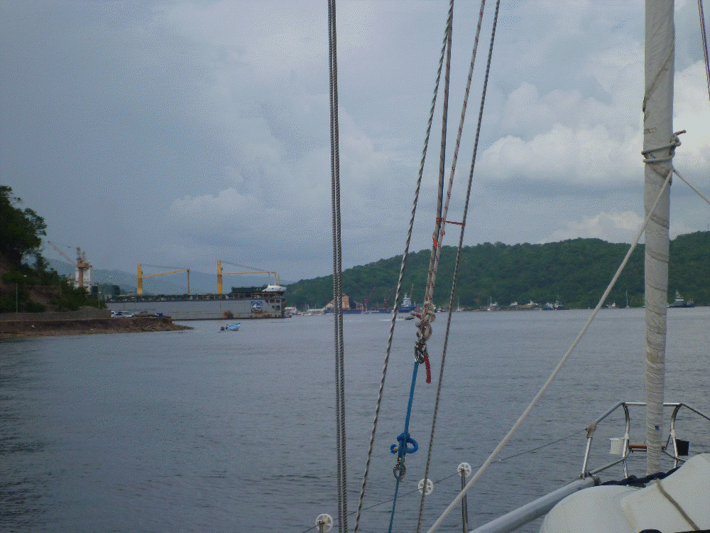 | A huge floating dry dock confronted us as we turned into Chaguaramas |