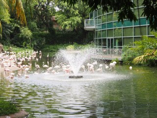 The park itself nestles on the hillside wth lots of ponds, enclosures and a huge walk-in aviary complete with 100 foot waterfall. Apart from the penguins who were a sorry looking bunch mostly interested in their compatriots staring at them from the mirrored wall, most of the birds were from Asia and therefore exotic – Jurong’s claim that it is “where colour lives” is indeed true. NB: Do penguins do anything other than stand around in large huddles anyway?