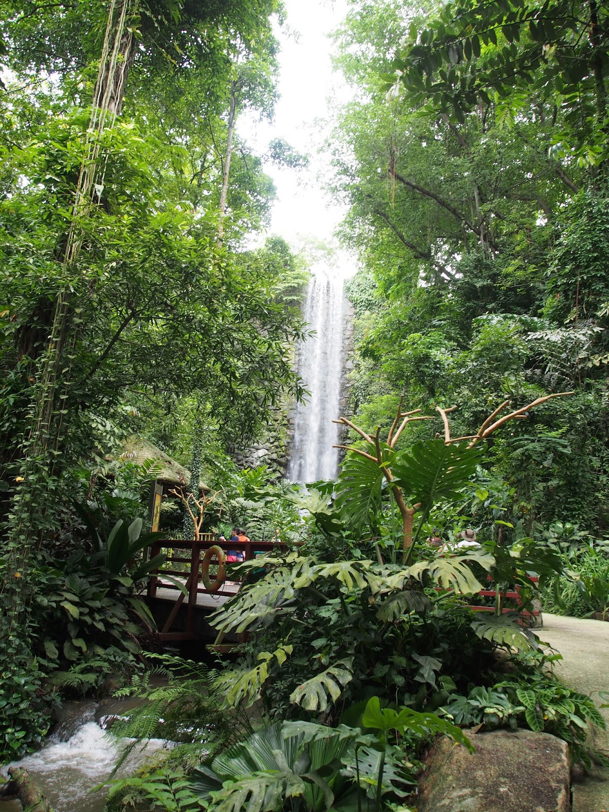 The park itself nestles on the hillside wth lots of ponds, enclosures and a huge walk-in aviary complete with 100 foot waterfall. Apart from the penguins who were a sorry looking bunch mostly interested in their compatriots staring at them from the mirrored wall, most of the birds were from Asia and therefore exotic – Jurong’s claim that it is “where colour lives” is indeed true. NB: Do penguins do anything other than stand around in large huddles anyway?