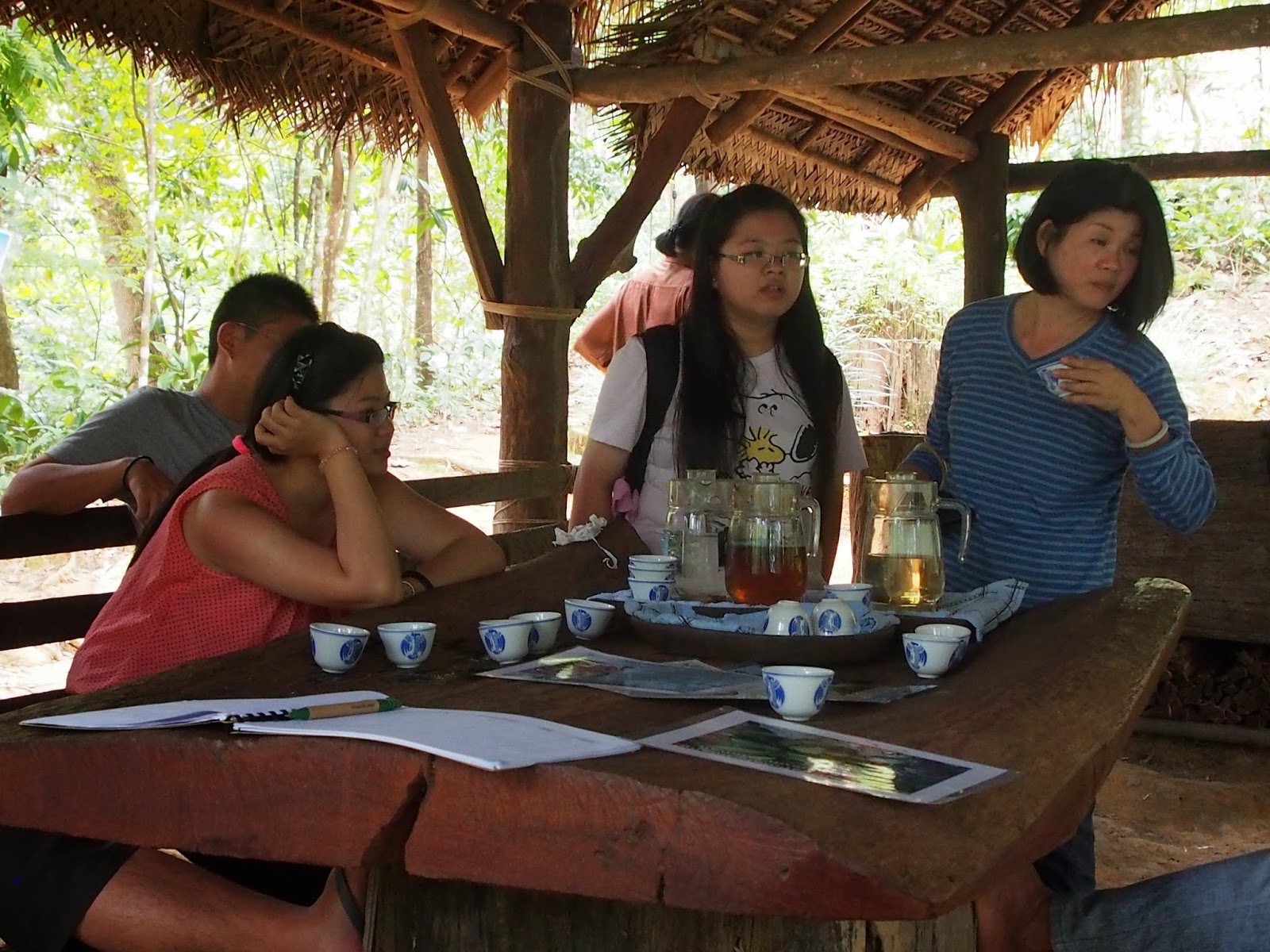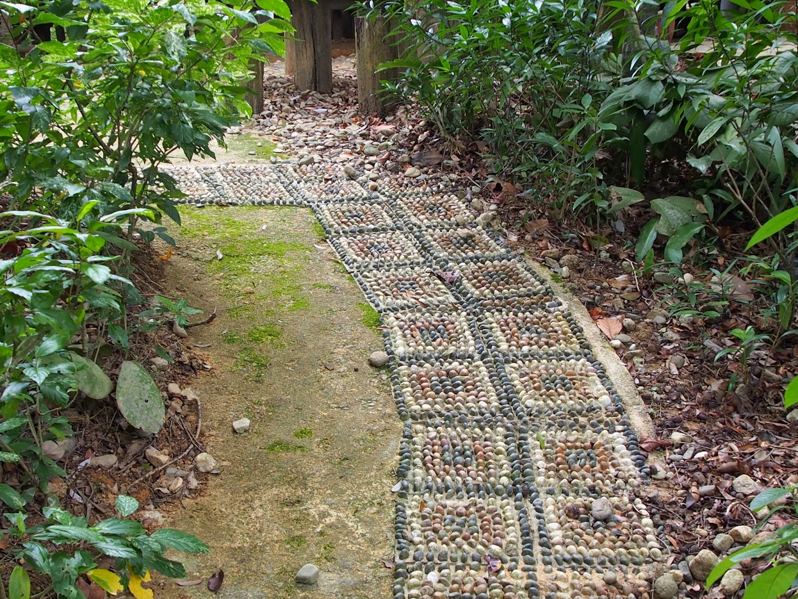 Was that a road sign on that distant island? It seems that with so many islands and inlets huge motorway style signage was required, complete with brown tourist destinations and blue places! The herbal garden was interesting with almost every tree and plant labelled but unfortunately they were mostly in Malay with smattering of Latin or European names I half recognised. Our captain brewed up two revolting and one tasteless “tea” for us all to try using water kept hot in two blackened pots over a wood fire. Medicine is not supposed to taste good but these really were bad and we couldn’t really understand what health benefits these local brews were supposed to impart despite our fellow passengers interpreting for us. The massage path was fun to try but proved painful to our soles after just a few metres.