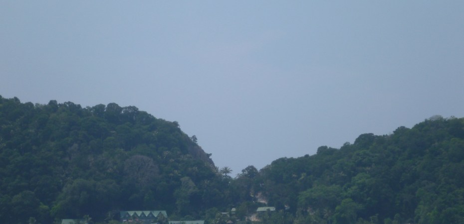 A 30 odd nm motor trip would take us around to T Pangaii a quiet little bay located just north of the south east tip of peninsula Malaysia, just seven miles as the crow flies due east of Sebana! A few hours in and storm clouds began to gather over the mainland. Motorsailing with the main up we tacked, put in the second reef as a precaution and headed out to sea skirting around the rain. This ploy soon failed – it was pouring down. The land disappeared leaving us debating the wisdom of trying to close the land again to find our planned anchorage. Just as we’d agreed to carry on through the night the rain clouds parted and a grey watery sun encouraged us to head west to find Pangaii where we tucked up behind the little seaward island for a comfy night. We weren’t the only ones, another unidentified yacht joined us much later in the evening.