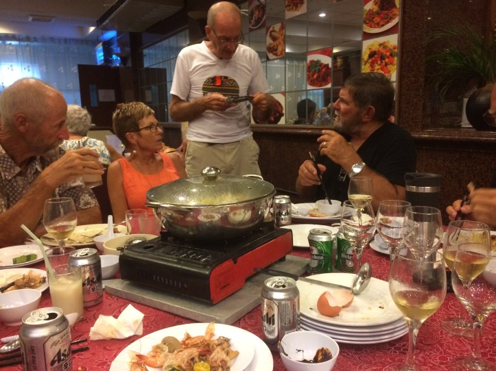 The last official function of the rally was a steam boat dinner in a local hotel on Sunday 25 August. Almost everyone attended and the communal effort of cooking our own supper was thoroughly enjoyed by everyone. Afterwards there was a comic round up of rally events as seen through Aussie eyes, some funny but some a little too close to home for comfort for a few boats. We took the dig at us in good heart but others weren’t so impressed, it’s a cultural thing and with so many boats from one nation in this fleet it has been at times rather painful for the minority.