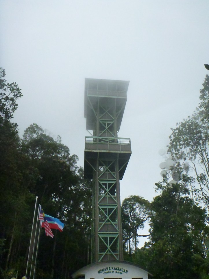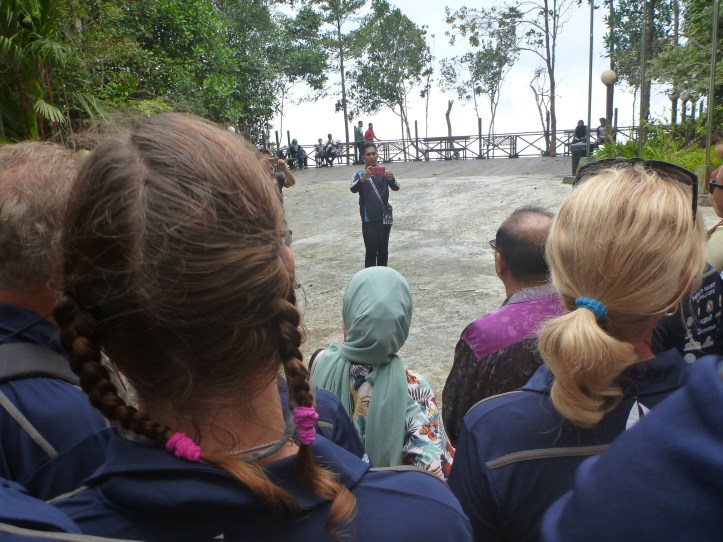 Afterwards all 60 odd of us were loaded into minibuses and with a blues and twos police escort raced through the town and on to Mt Silam. There, close to summit, is the tower of heaven which on a clear day offers spectacular views over the bay as the combined height is almost 700m. Today the cloud closed in below us! We were happy to be chilly but our hosts were rather dismayed. Then there were refreshments in the form of various local fruits including rambutans, lychees and mangosteens which are all in season just now.
