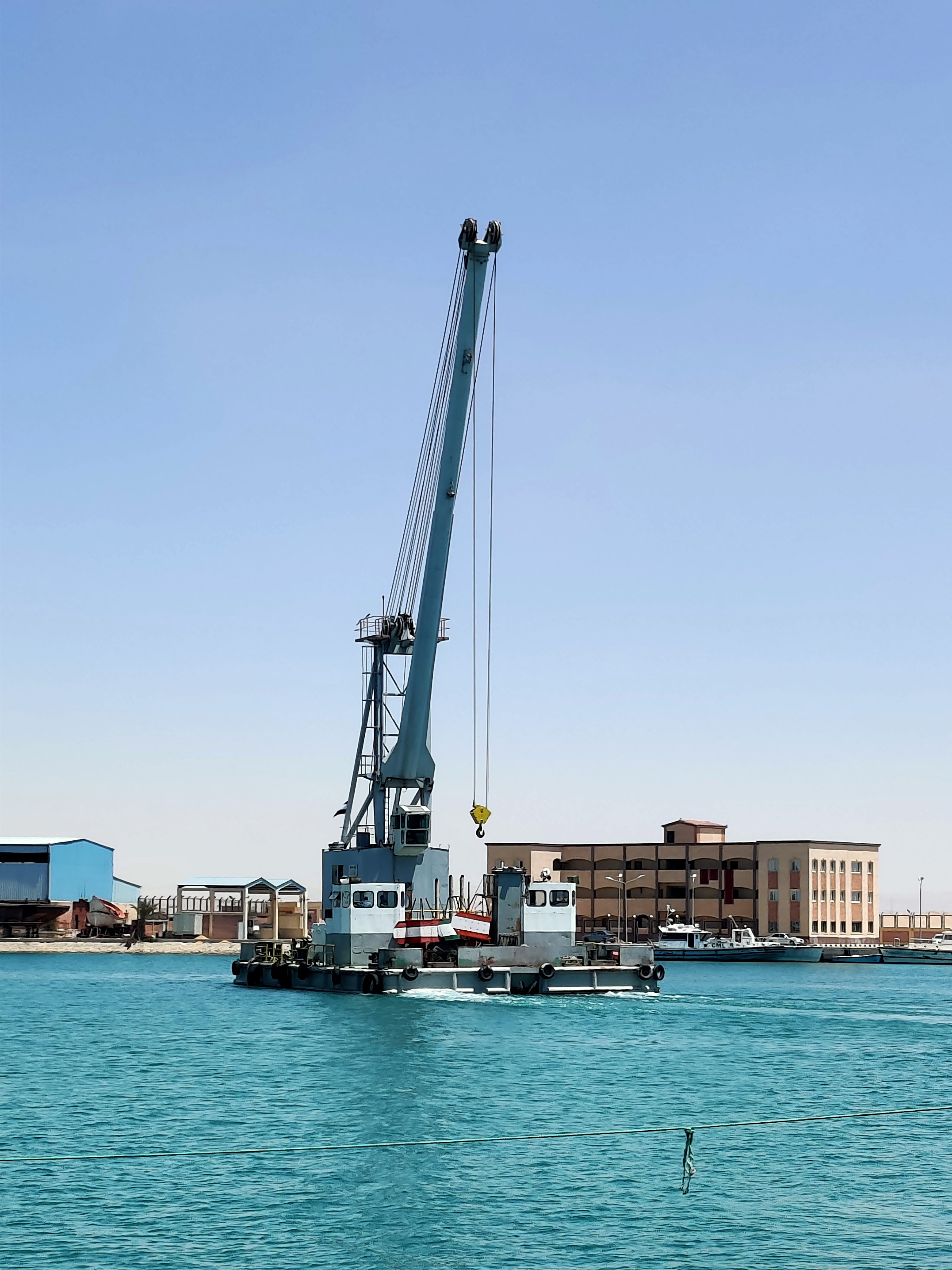 12:15 The measurers arrived. One wearing gloves, neither with masks, let’s hope they are both healthy. Anyway their visit was short as being a British Part I registered vessel, Temptress has the same paperwork as commercial ships; the measurements on that certificate are accepted by the Canal Authority. The only extra bit of information needed was the depth of the hull as opposed to the draft of the vessel. The latter is measured waterline to bottom of keel and is 2.1m, the former is from the bottom of the hull to the toe rail which when you do the maths comes to much the same figure! They filled in their paperwork and went off to the next boat. I think Suez bases its charges on hull volume or displacement, equivalent to the gross registered tonnage on Temptress certificate and carved on the plaque mounted inside the boat.