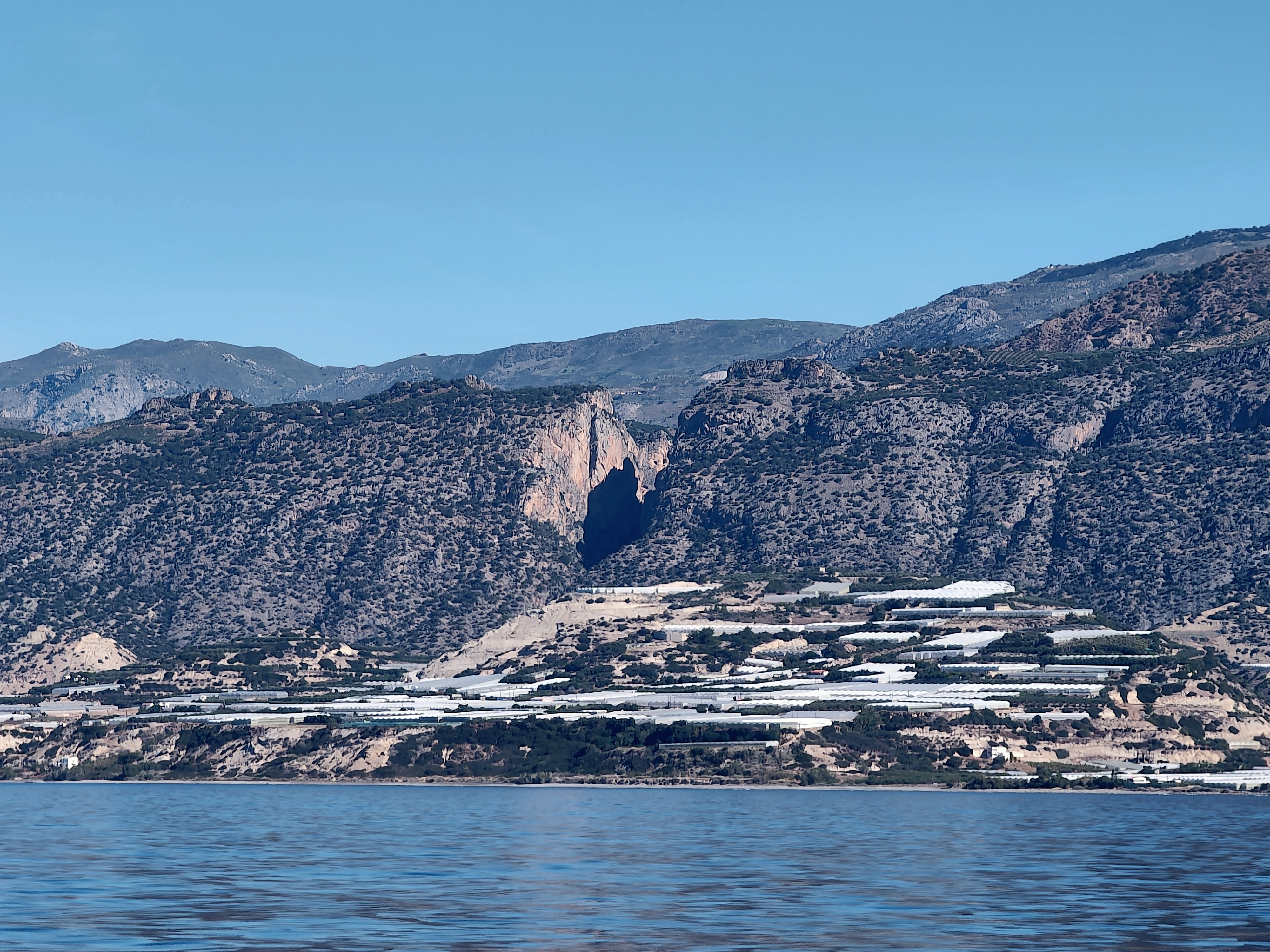 The mountains of Crete will be our companions on our starboard side for the next hundred odd miles before we turn northwest towards the Peloponnese. The scenery provide plenty to look at; tiers of greenhouses, grubby patches of snow in hollows near the peaks, occasional white painted buildings all bathed in the clear bright light of the early morning sun. By nine we were stripping off the layers.