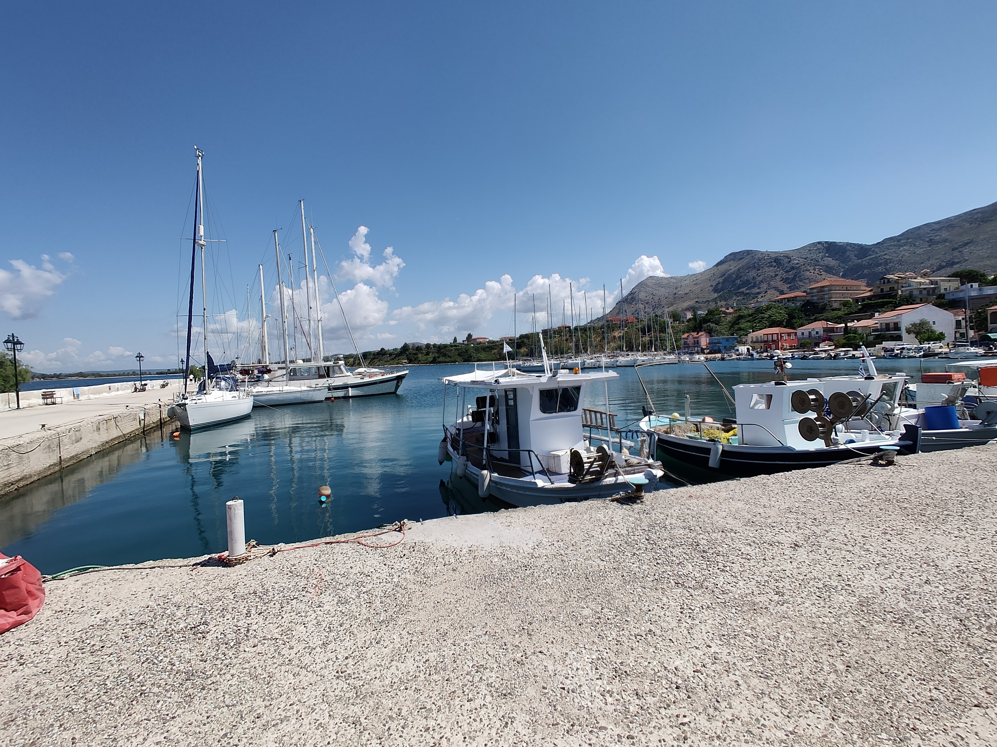 At the Konidaris boatyard we met up with Aris to go over our plan to leave Temptress in his care once flights open up and he has launched enough boats to have room for us. It’s all agreed except the dates! With Pat and Tony we then went in search of gyros for lunch in Nidri before driving back, stopping for a late afternoon coffee in one of the little coastal towns we missed on the way up. Again hardly a yacht in sight on the town quay.