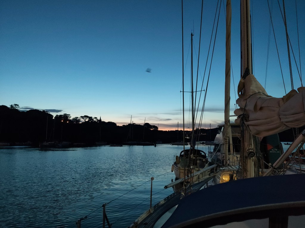 Another round of showers ensued as there’s plenty of hot water when we are motoring. The crew smell sweetly of Hawaiian Tropic after sun butter! Then around five o’clock, the breeze finally relented and swung round to the west. We could have sailed but by now we all want to reach land. With the main eased and the spring tide Temptress under engine was comfortably rolling along through the flat seas at over eight knots. It seems highly likely that we could reach port in time for supper ashore.