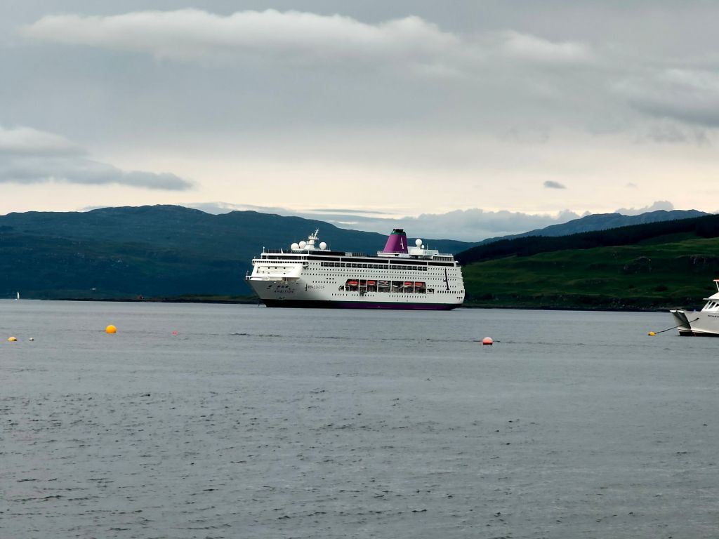 A large cruise ship had arrived before breakfast and spent the day ferrying passengers back and forth. Most of them boarded smaller boats for a trip out to Staffa, some dressed for walking boarded a coach and another group gathered outside the distillery. Few actually seemed to wander around the town.