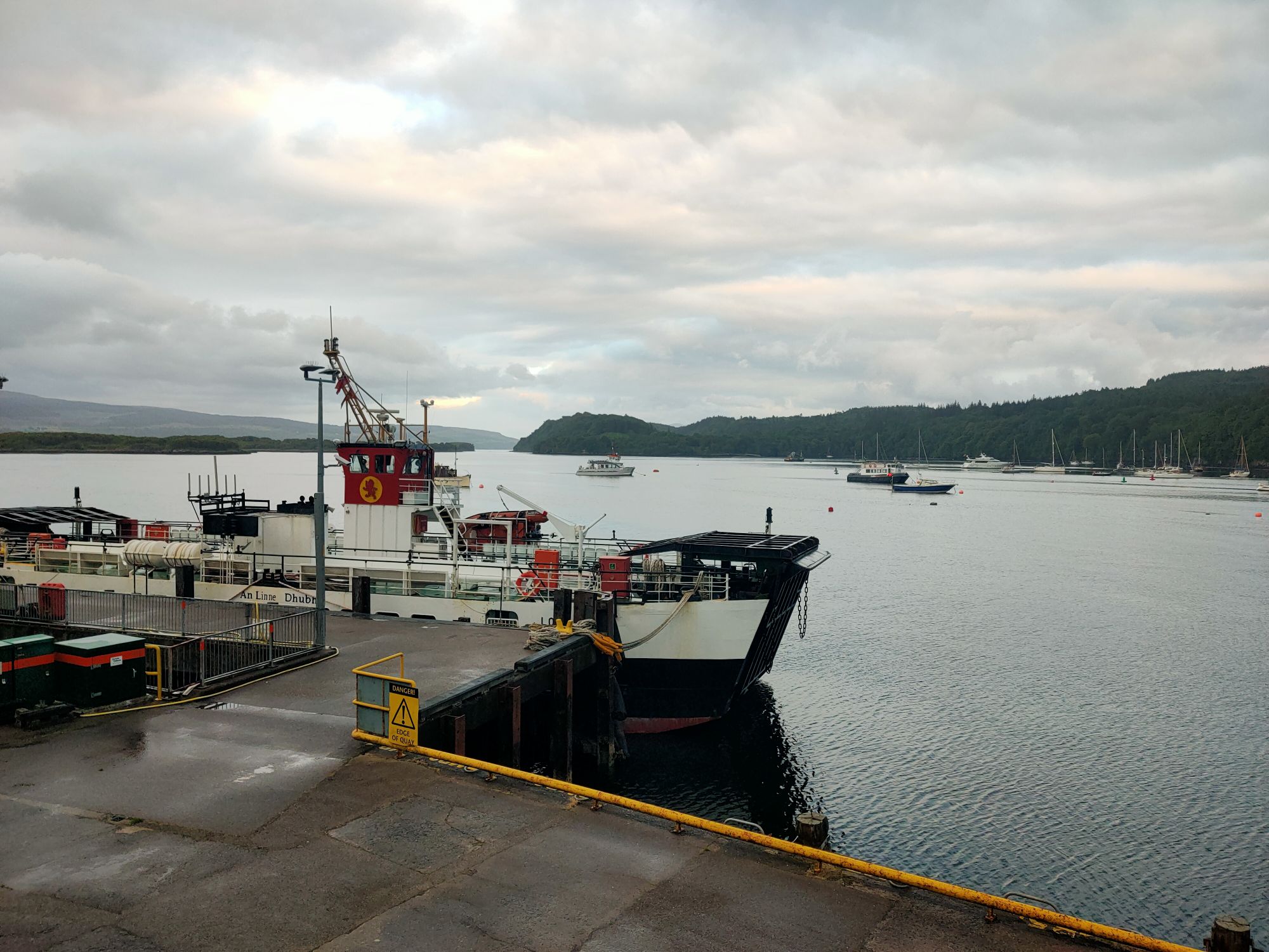 As the morning was relatively dry I took the chance to do some laundry, finding an empty machine in the harbour’s busy laundrette mid-morning. I love the conversations you have waiting for machines to complete their cycle. The first couple were sailors who’d sought shelter here on Tuesday like us. They’d sailed up the east coast from the Medway then through the Caledonian and thwarted by the weather from getting further north were off to the pub whilst their laundry dried armed with pilot guides to plan their southward course for the next week or so. When I returned to fold our own dry laundry into the sailing bag, a lady with an English accent but a resident of Austin Tx told me she was staying in a cottage over near Ulva and recommended several walks over that way.