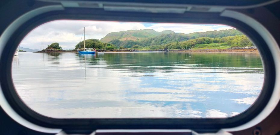 Sometime in the dark the skipper heard a boat come in, it didn’t disturb my slumber one jot. It was anchored very close off our stern but the wind has gone completely for the first time since we left Bangor. The water was mirror smooth. Slowly most of the boats departed. Our very near neighbour among them. He explained before he raised his anchor that most of the boats were either charter boats on their way back to base on a Friday night or on their first night out of Oban on a Saturday night. The rest of the week the place is quiet.