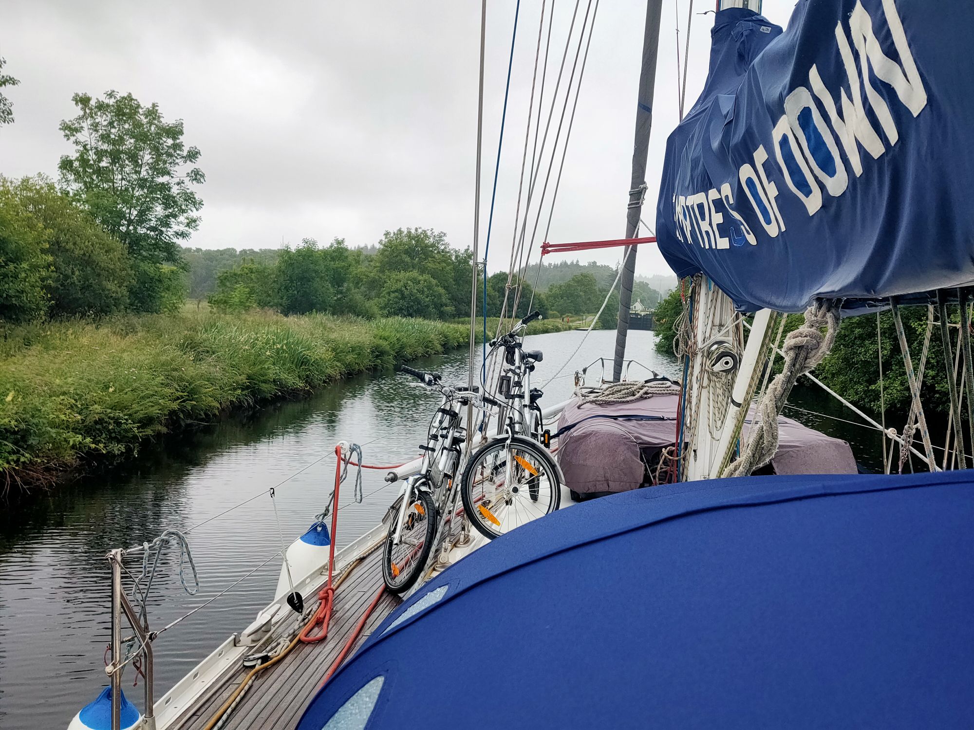It rained overnight and was raining again when we woke up. The hills give us complete shelter from the wind so apart from the occasional traffic on the road that runs alongside the canal and the rain dripping on the cabin top, there’s little or no noise. About 9:30 a small yacht passed us heading south to Lochgilphead, its horn alerting the bridge keeper to its imminent arrival. We have no inclination to get wet and the weather radar indicates that the rain should pass mid-morning so are staying put for now.